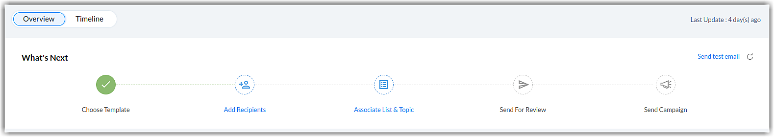 - 在活动详细信息页面的“下一步”部分单击选择模板 ,将转到Zoho Campaigns页面。
