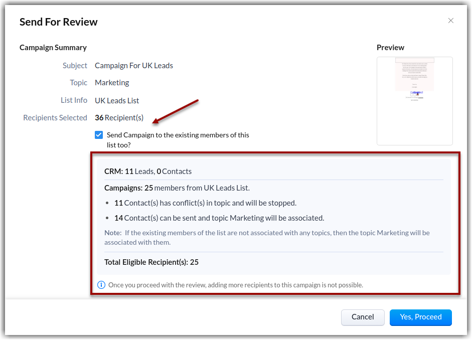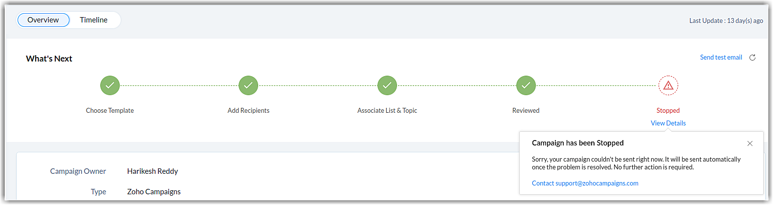 - 任何未发送的营销活动将只能从Zoho Campaigns发送。