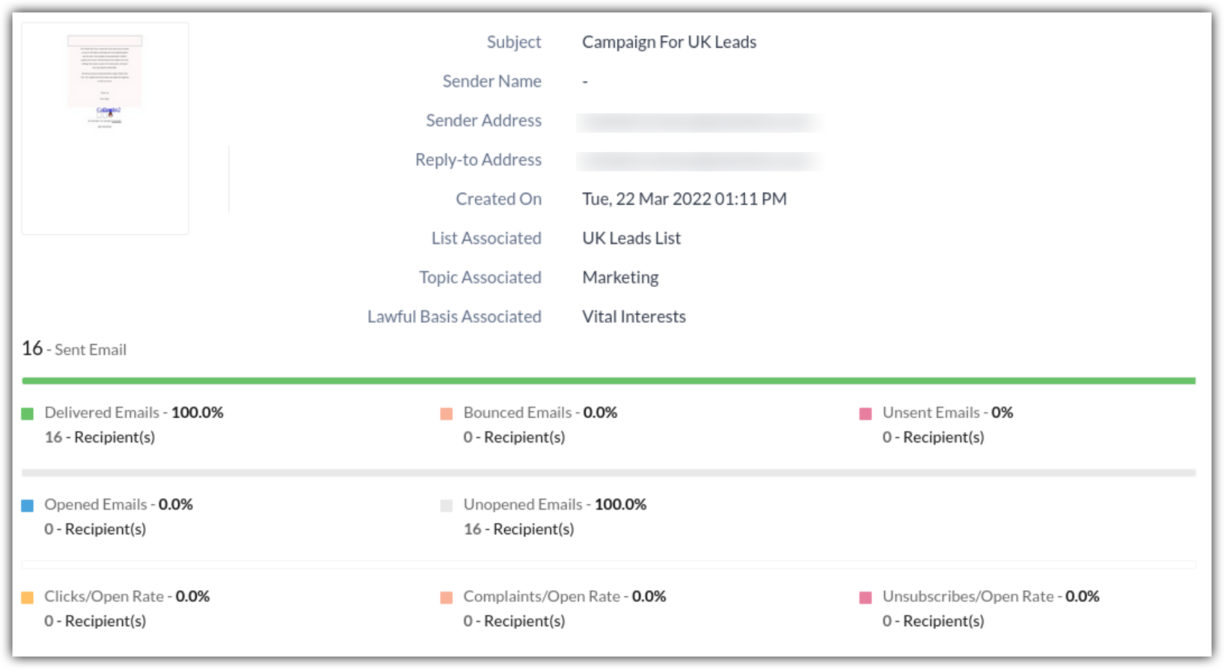 您还可以在CRM的内置市场活动模块中跟踪通过 Zoho Campaigns发送的电子邮件响应。