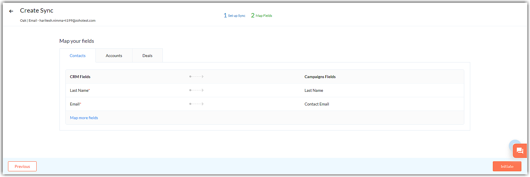 注意:同步可用于线索、联系人和自定义模块(模块必须有一个邮件字段)。