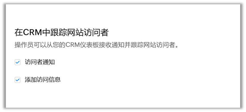 | 访客类型 | 访客分为以下几个类型:客户,商机,联系人,线索,以及未知。 |