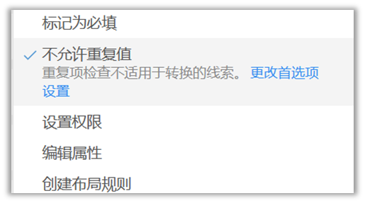 请点击以下链接了解如何将字段标记为唯一以及相关注意事项:将字段标记为唯一