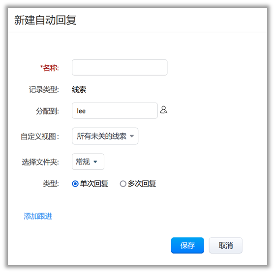 在收到收件人的回复后,您可以将线索或联系人排除在后续操作之外,并只对没有回复的线索/联系人安排下一次的后续跟进。