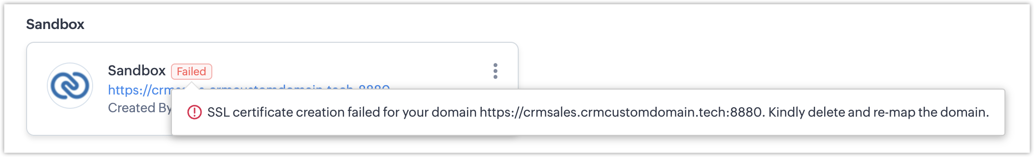 此外,在DNS管理页面中添加/更新条目(添加CName记录或更新现有记录)后的更改通常需要几分钟才能将域跨服务器(基于DNS提供商)传播。 在此之前,将显示一个错误即域名无效,因为从应用程序端来看,我们无法验证域是否正在传播。 请根据需要将此等待时间考虑在内。