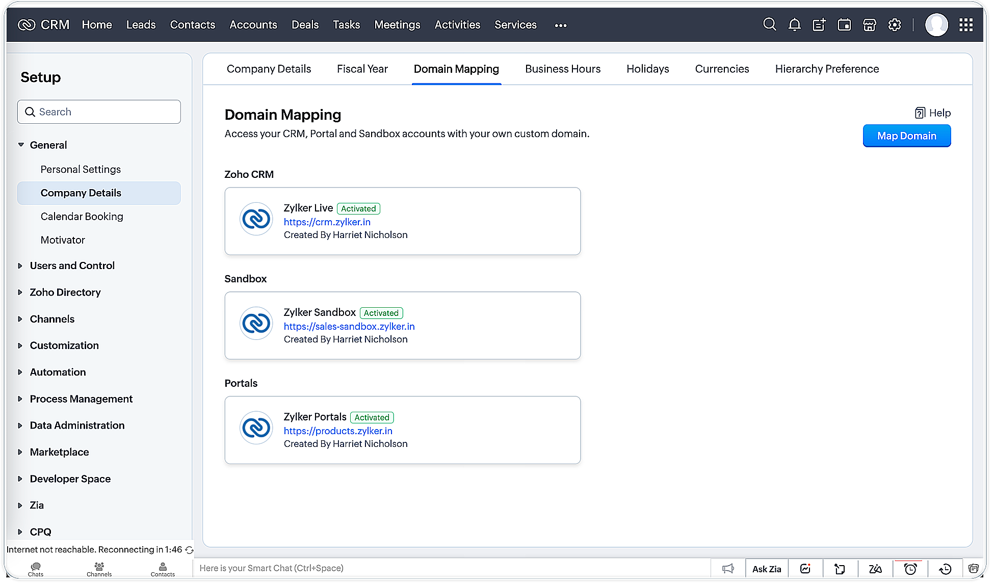 此自定义域映射解决方案可在Zoho CRM上使用。 使用Zoho CRM中的自定义域映射工具,您可以有效地