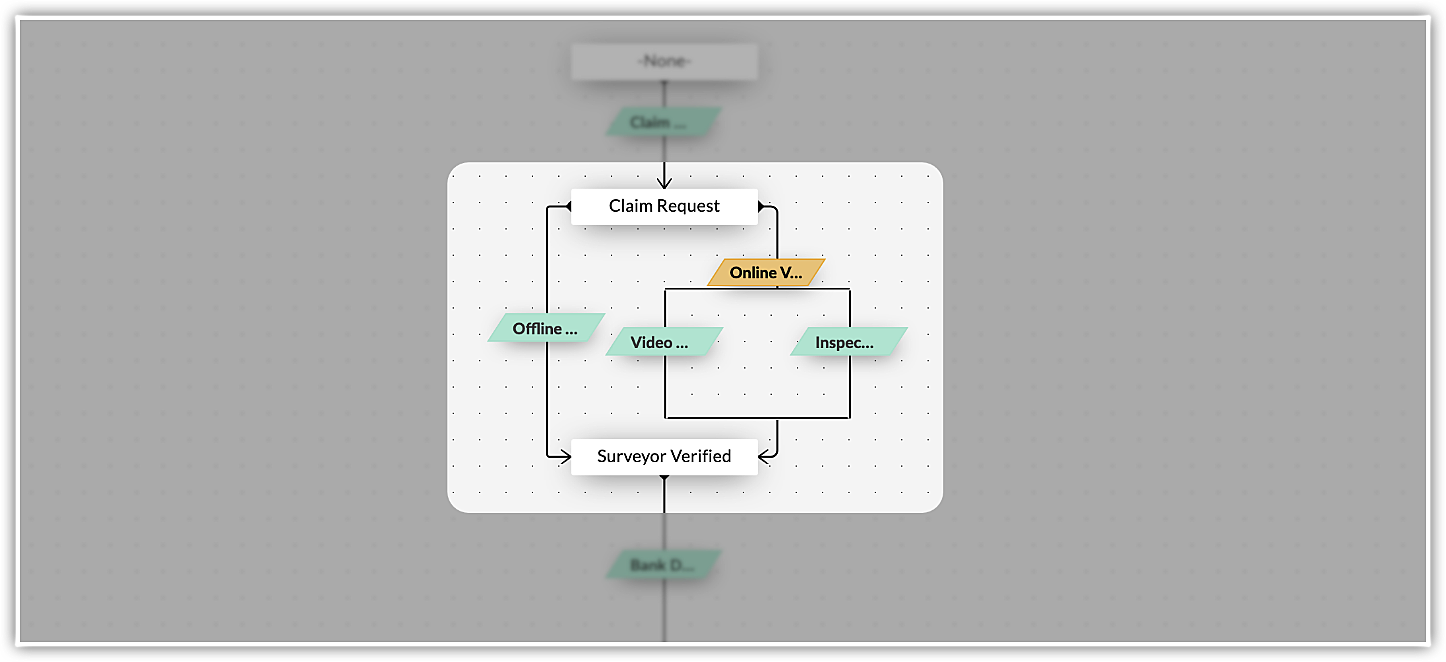 考虑一下车辆保险机构的情况。 在客户提出请求后,为了批准保险索赔,检验员需要在进一步处理索赔之前先核实车辆。 现在,检验员可以通过要求提供车辆视频和带有其他文件的照片在网上进行验证,也可以亲自到车主处检查受损车辆。 在这种情况下,您可以在两种状态之间创建常规的迁移(用于线下验证)或并行迁移(用于在线验证)。