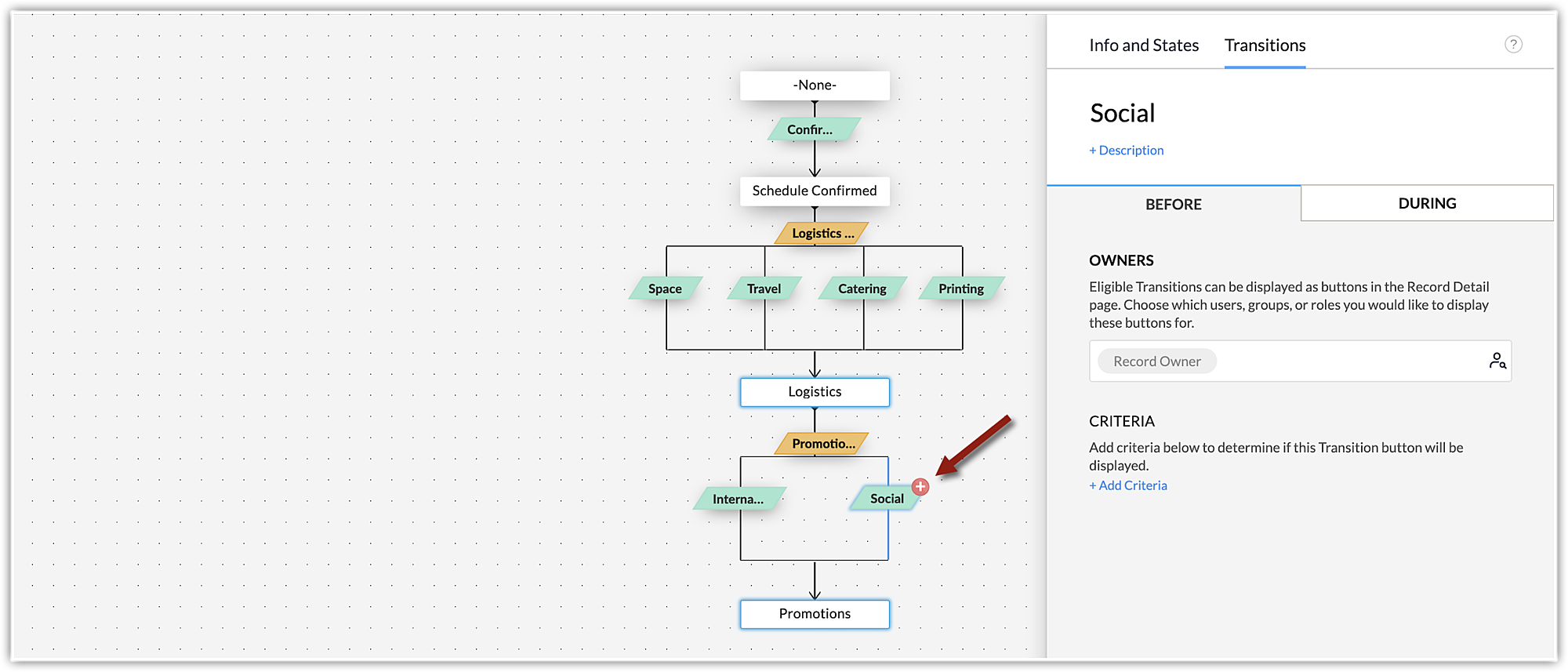 因此,您只剩下两个解决方案——创建一个名为“后勤工作”的迁移,并将所有这些项目列在清单上。 或者,您可以创建额外的状态,每项工作是一个状态,并扩展流程流。 但您这样最终会得到一个臃肿的流程和一个非常混乱的总蓝图。 中间步骤看起来像这样: