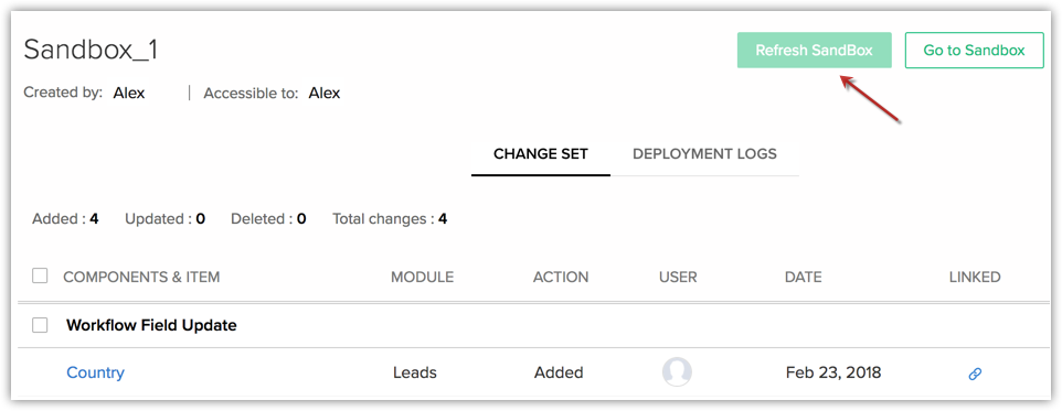 Zoho CRM 允许您使用刷新沙箱选项来更新沙箱。