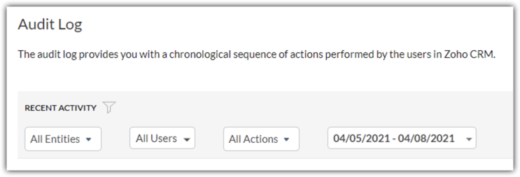 拥有管理员角色或CEO职位的用户可以访问整个机构的审计日志,但是其它角色的用户仅可以查看自己和下属的审计日志。