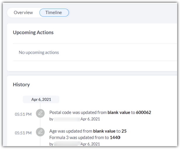 5. 经理对我拥有的记录进行了一些更新,这些更改未体现在审计日志中,但是显示在记录的时间轴上。