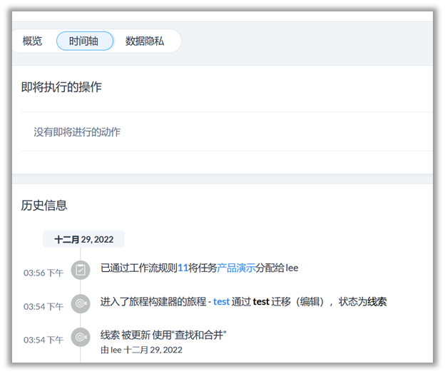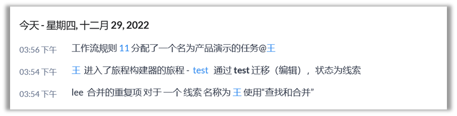 所有查找和合并的活动将记录在审计日志和记录时间轴中。