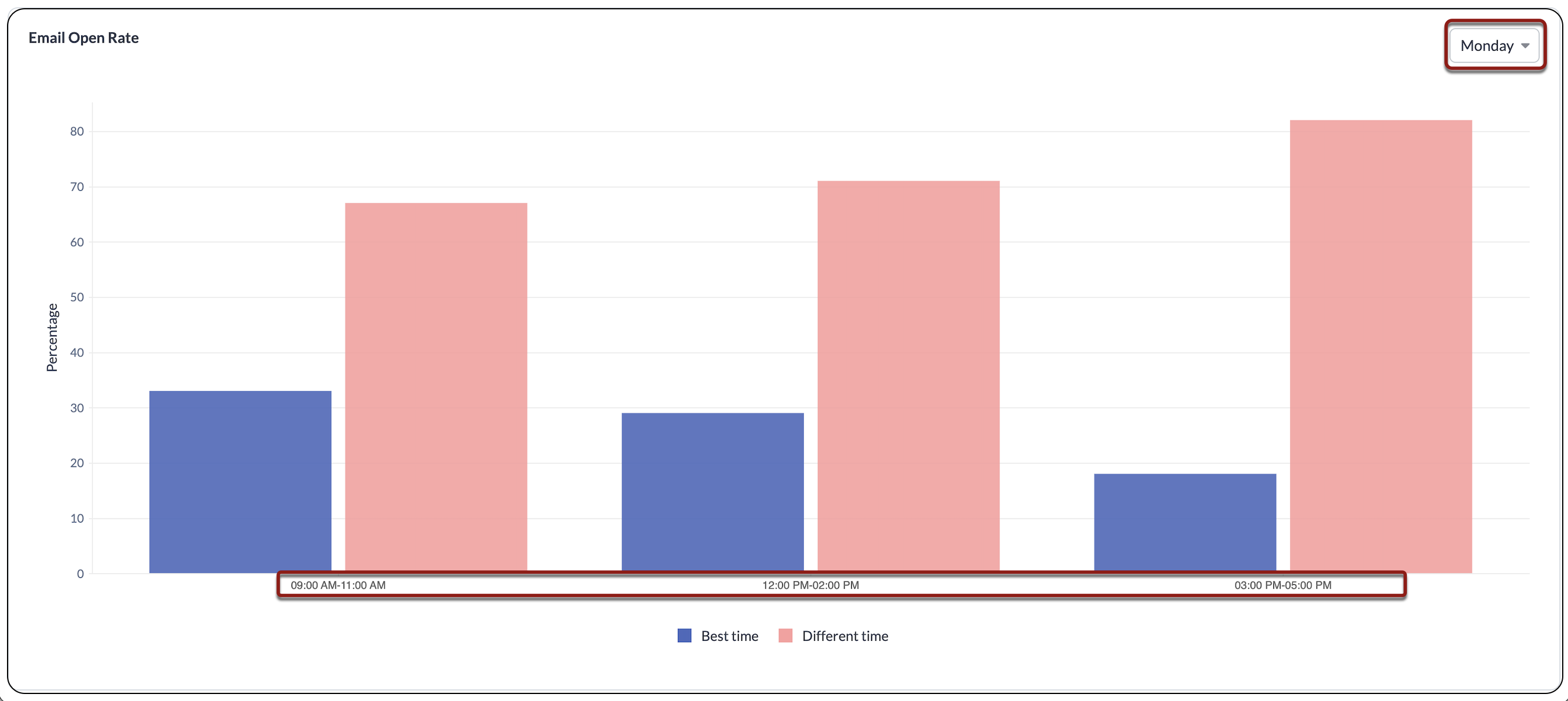 - 在最佳联系时间分析页面上选择的持续时间内显示所有的见解