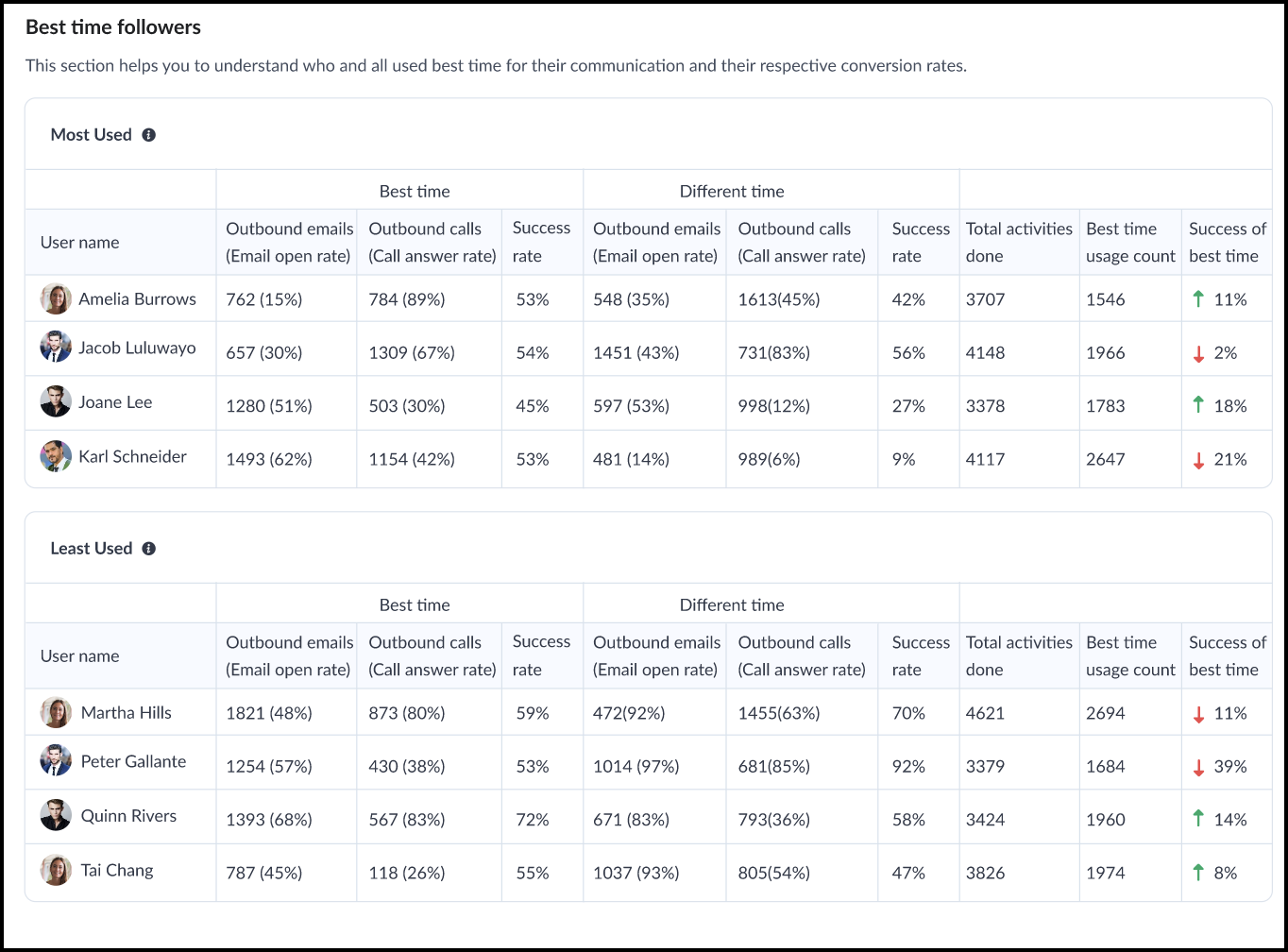 - 发现是否以及有多少CRM用户正在使用最佳时间建议来联系潜在客户和联系人