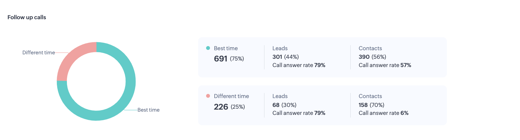 - 在不同时间完成的跟进电话数量及其电话回复率