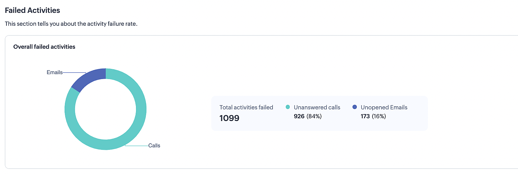 在失败的通话和失败的电子邮件部分,将分别为线索和联系人模块提供失败的细分。