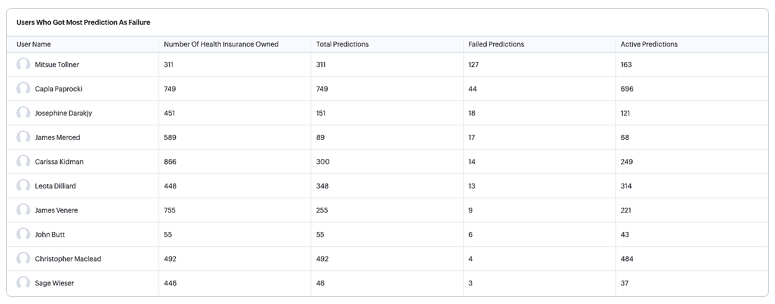 在此,Zia将以表格格式提供一份报表,其中包含它为CRM系统中的每个用户提供的所有预测总数、失败的预测数量和有效的预测数量。 这将帮助管理员级别的用户了解用户是如何处理商机的,并有助于更好地做出决策。 例如,如果Zia预测了一个特定商机的成功,但最终却失败了,那么管理人员就可以了解这种分析出了什么问题,甚至可以决定是否依赖这种预测。