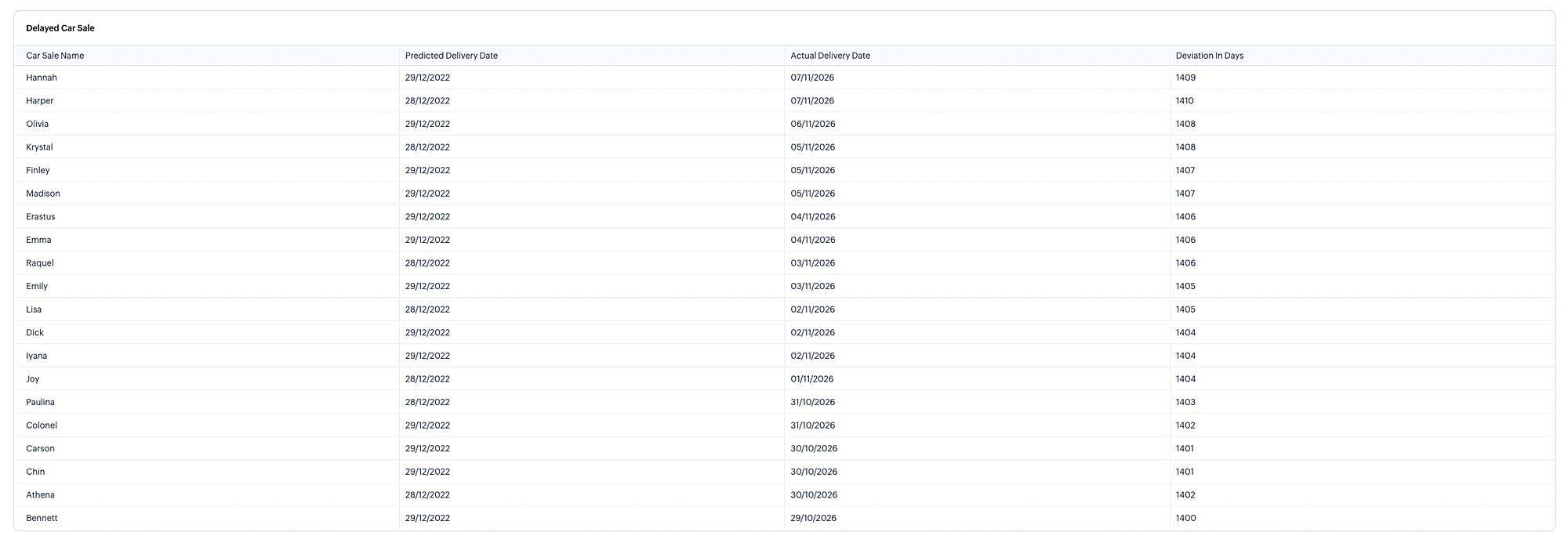 这将帮助用户了解哪些商机被推迟到他们的预测日期之后。 Zia将提供一份预测日期和实际转换日期的报表,以及以天为单位的偏差。