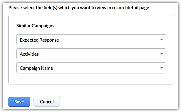 - 请选择您想要包含在请选择要在记录详情页上查看的字段 框中的字段。