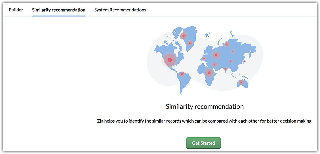 注意:Zia 的相似性推荐与推荐构建器不同。相似性推荐可以独立配置;无需在您的机构中配置推荐构建器即可使用此功能。