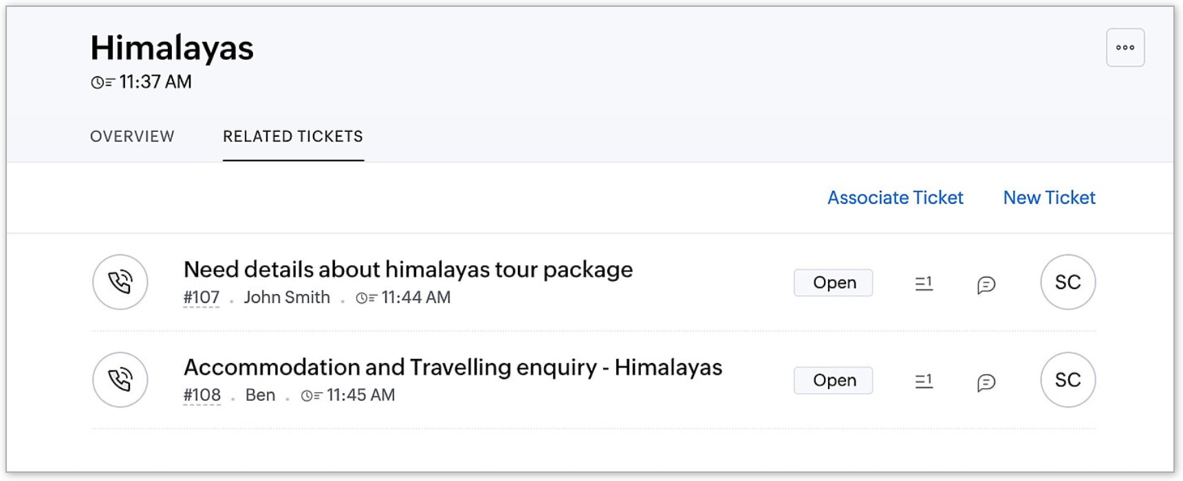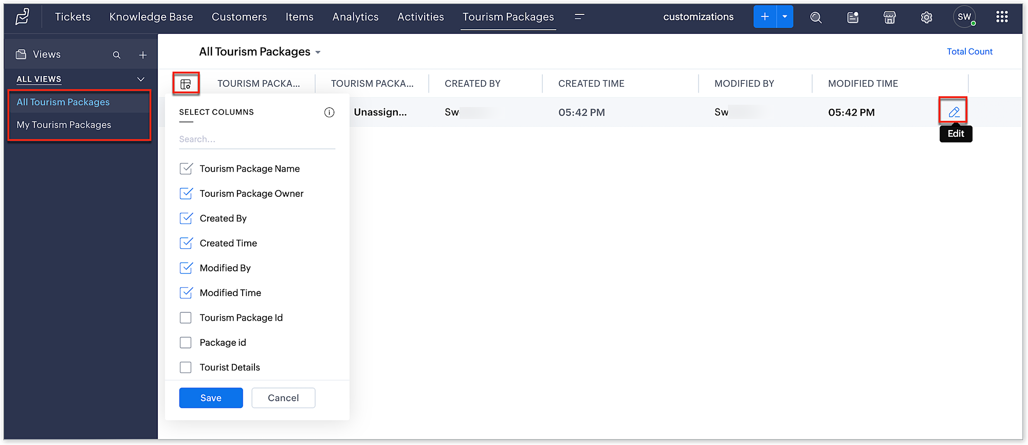 考虑一个使用Zoho Desk管理预订和票务系统的旅游企业。 他们创建了以下自定义模块来存储数据和客户信息 :