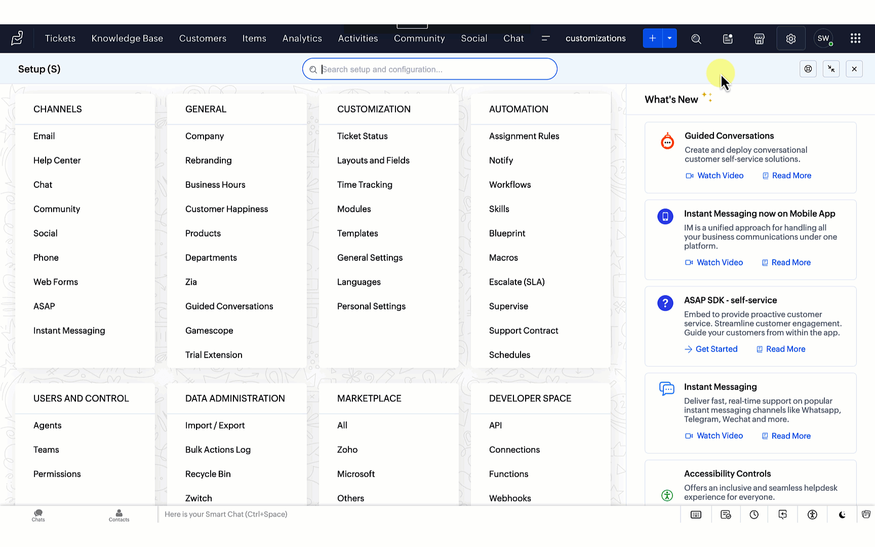 Zoho Desk提供了一系列系统定义的标准模块,如工单、客户、联系人、产品、任务等,用于存储特定数据。 这些模块带有一组默认字段和布局,管理员或客服人员可以轻松定制这些字段和布局,以符合业务的独特需求。 例如,工单模块中的类别字段可以重命名为“工单类型”,以使其与客服人员相关。