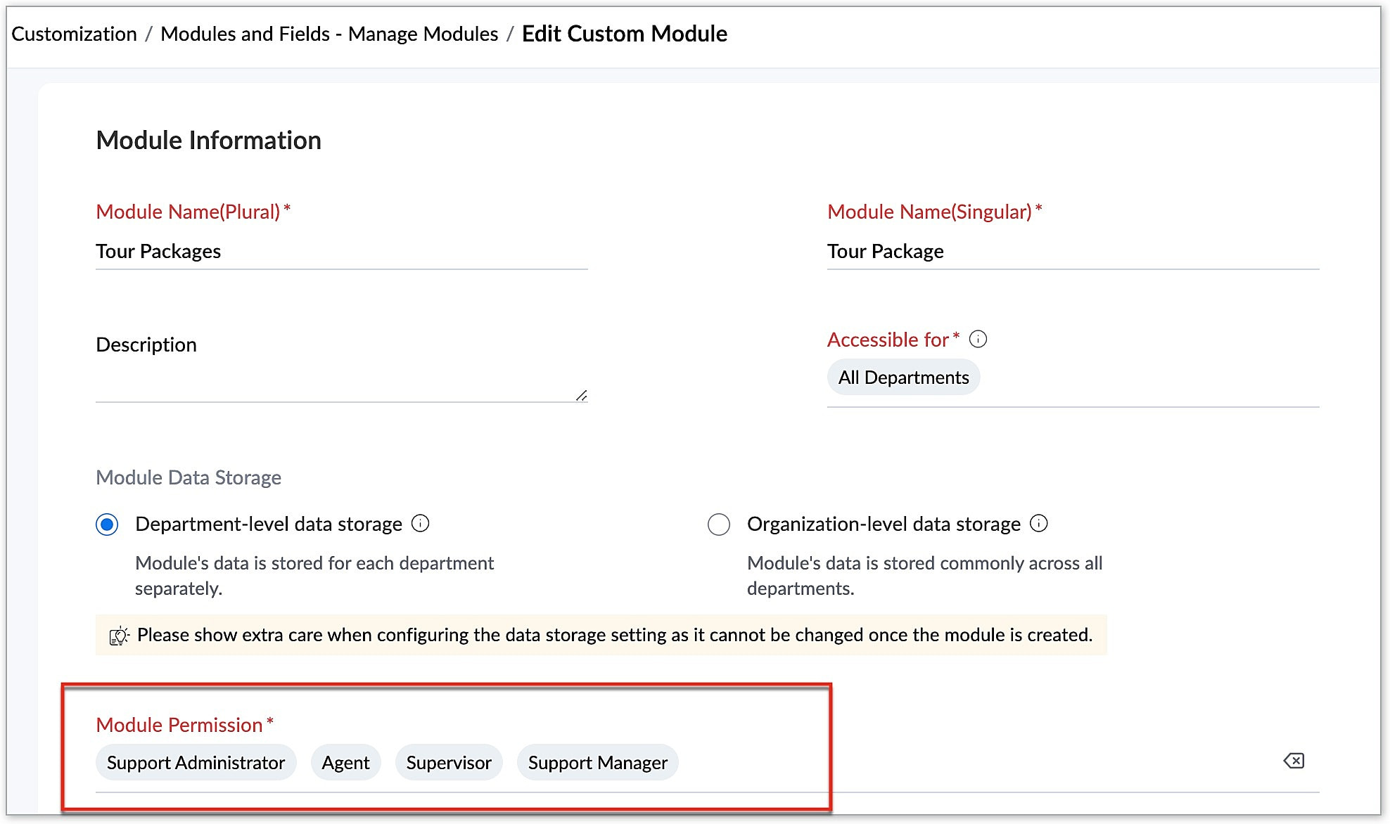 注意: 基于部门的可访问性正在进行中。 目前,默认情况下,所有部门都可以访问自定义模块。