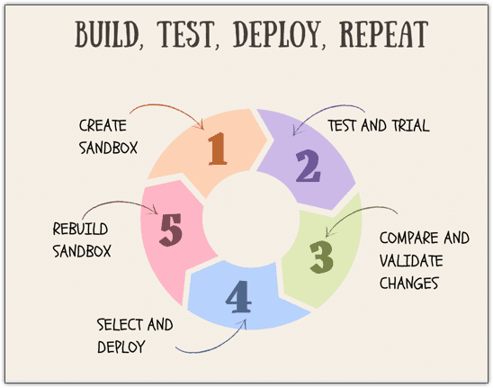 - 在生产帐户中完成的新修改或配置可以推送到重建的沙盒帐户中进行测试和验证。