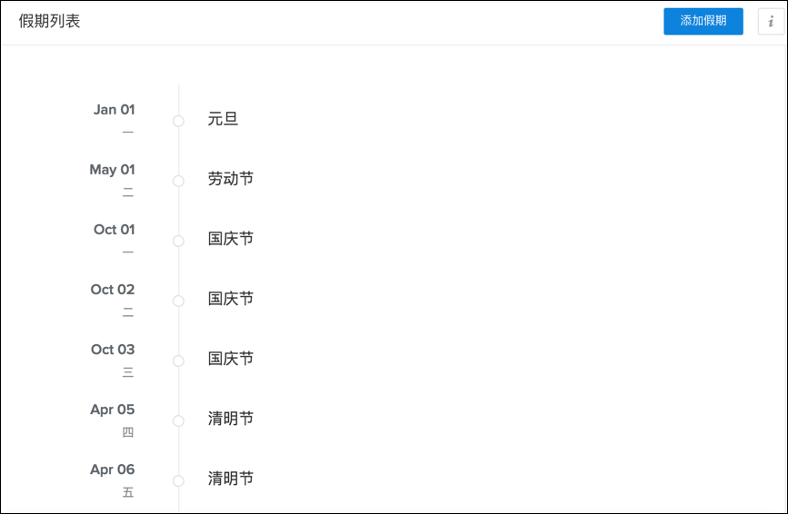 输入的假期将会设置您的异常工作时间。您可以输入需要的假期。