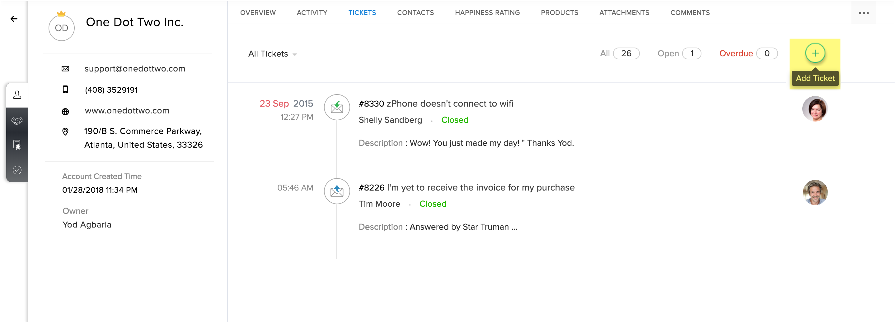 客服人员直接为客户提交支持工单的情况并不少见。例如,当客户从ABC Corp打电话时,其名称中的联系人不是一定要存在的。在这种情况下,客服人员将搜索ABC Corp客户,如果存在,将为其添加工单。当客服人员在工单中输入联系人的详细信息时,它将添加新联系人,之后将与该客户关联。
