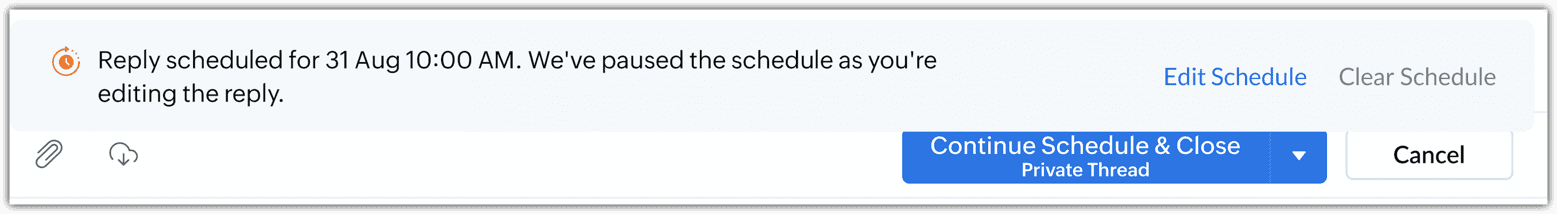 可以编辑预定的电子邮件以修改内容或收件人列表。 在编辑已安排的回复时,计时器将暂停,并在底部显示相同的备注。
