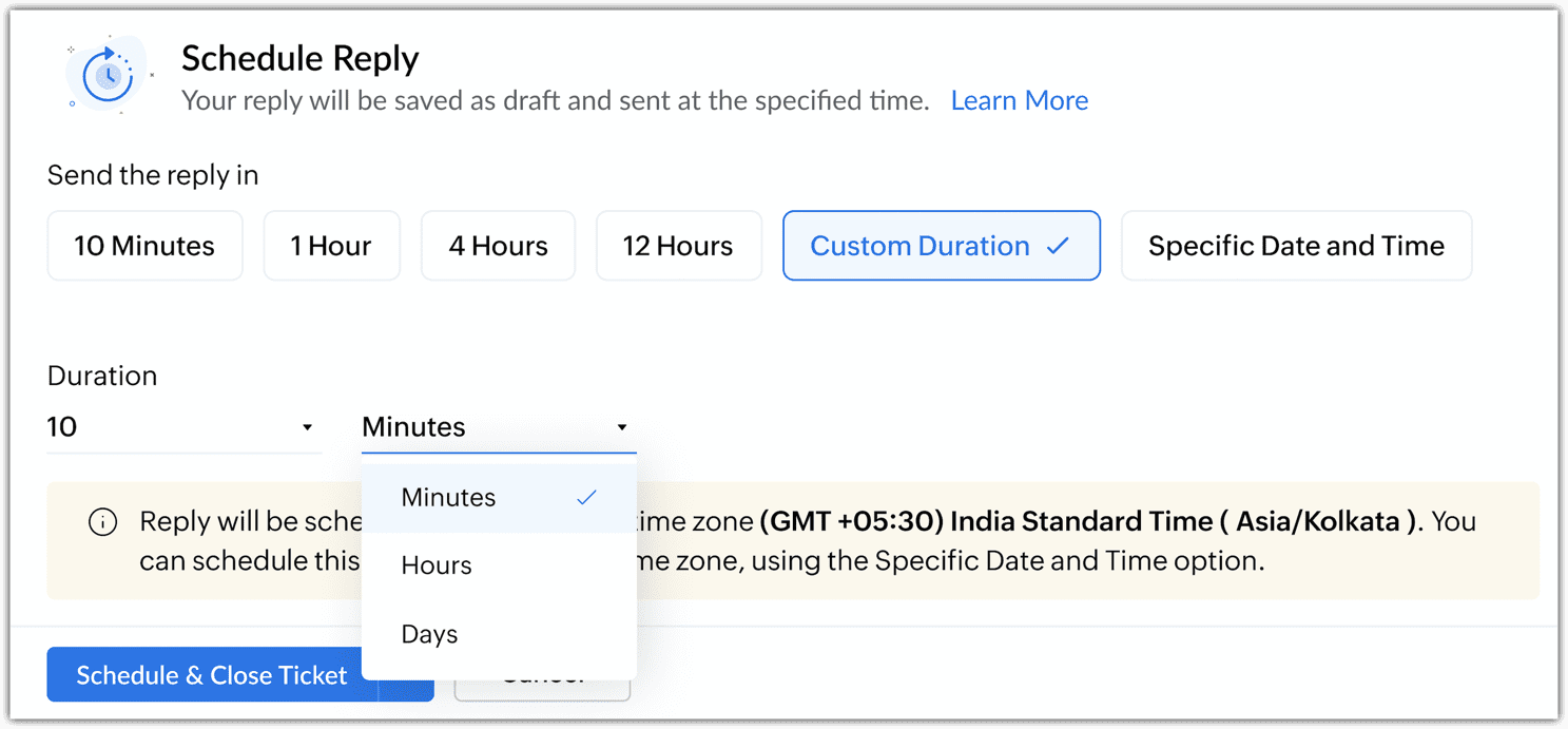 安排电子邮件允许客户支持团队确保他们的回复在他们的工作时间或工作日内到达收件人,而不管他们属于哪个时区。