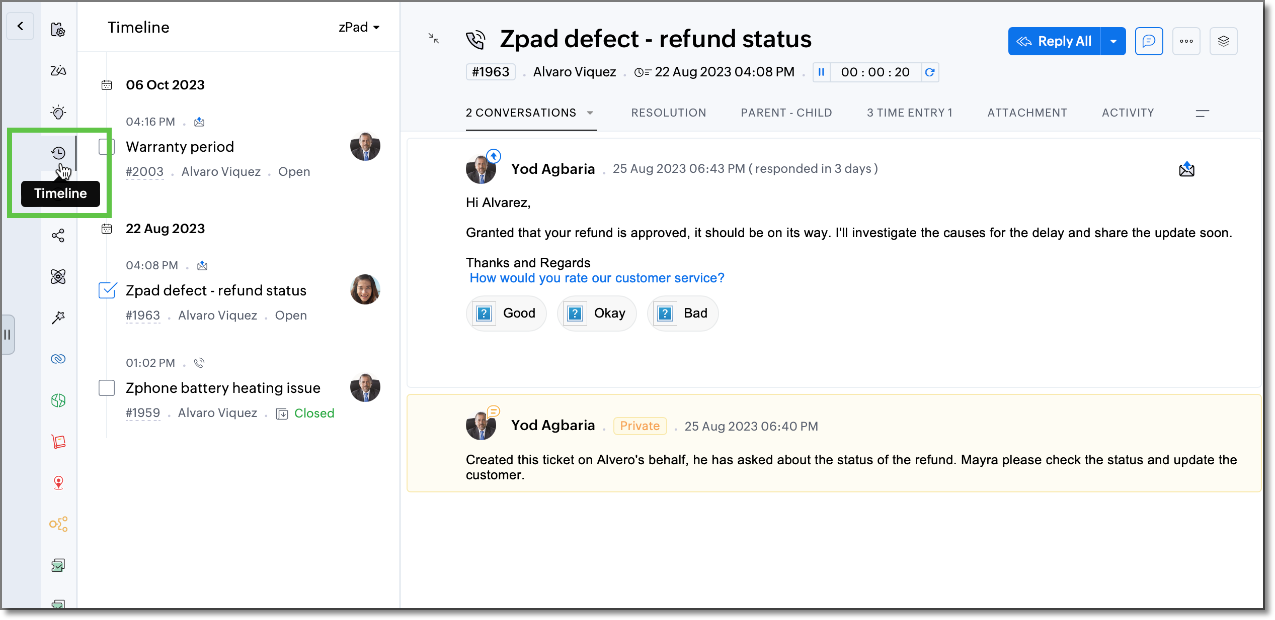 过滤和排序工单的能力,使客服人员能够快速访问详细信息和更新,从而促进更明智的客户互动。这种有条理的方法不仅提高了效率,还支持更好的沟通、监控代理表现和整体客户满意度。