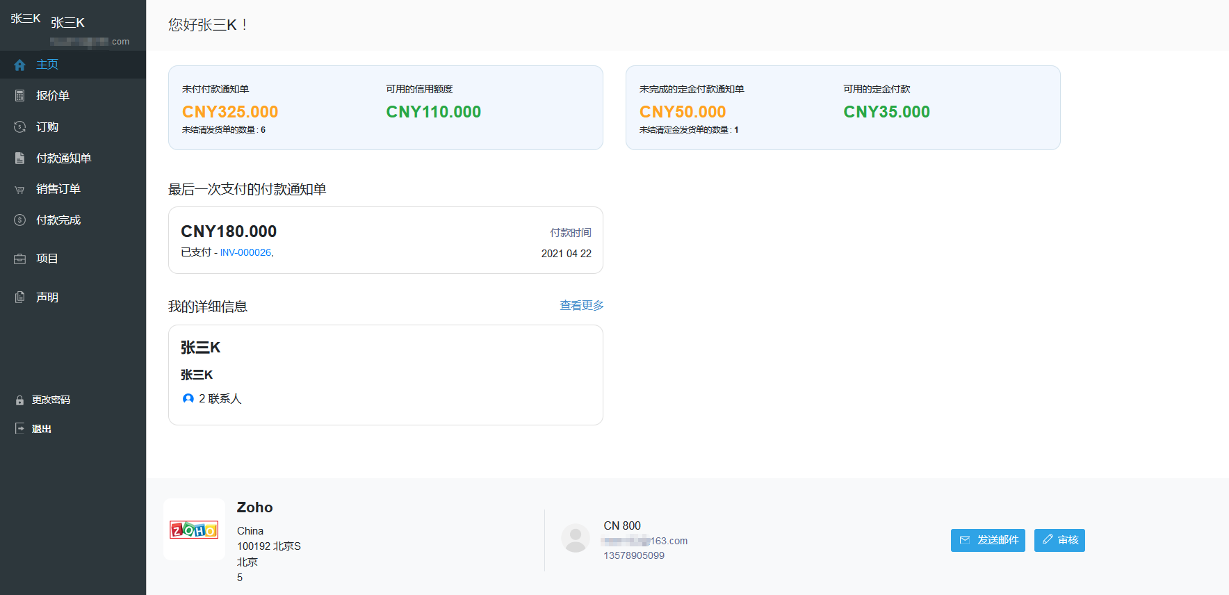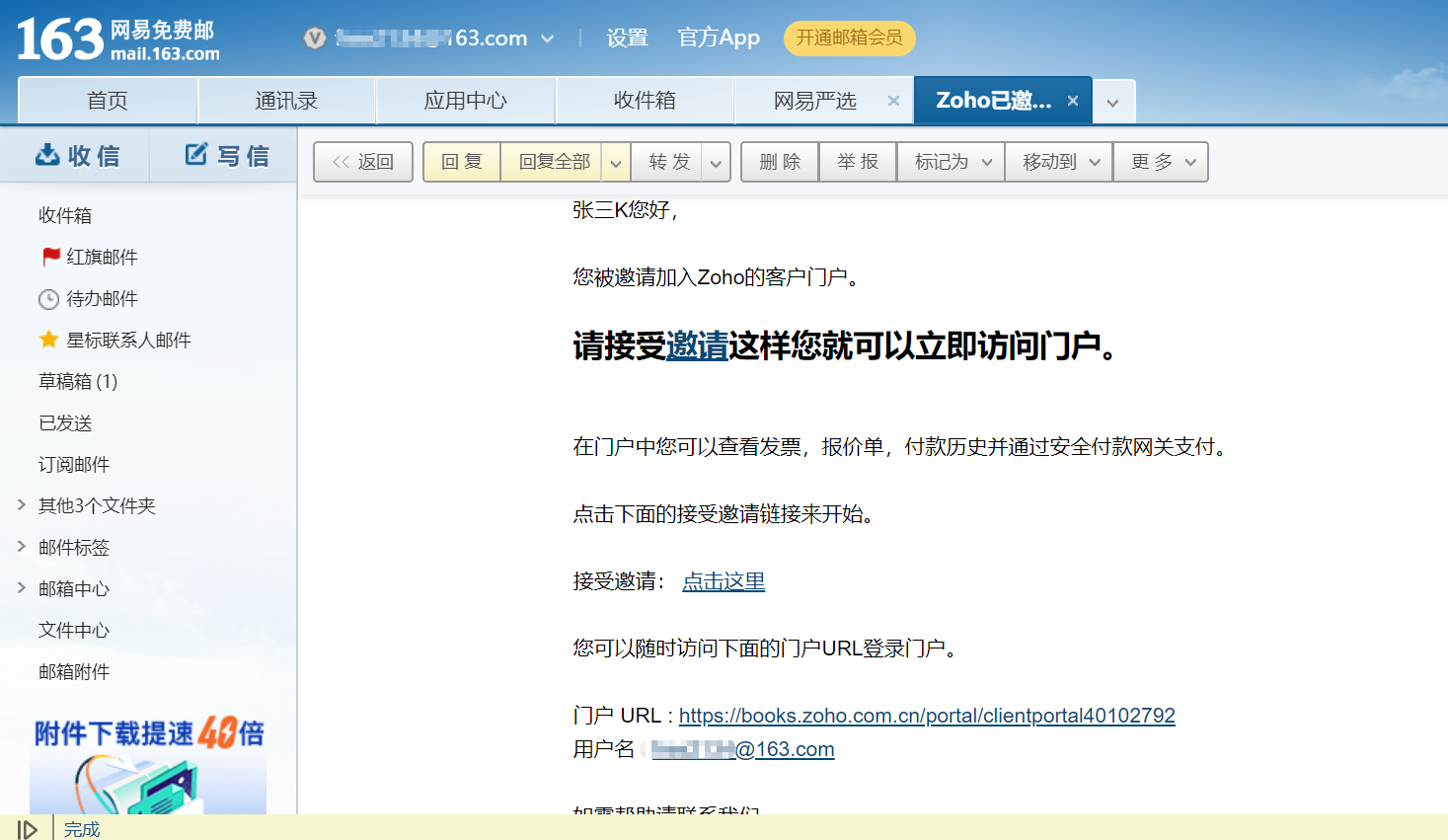 3.系统会向客户发送邀请邮件,客户点击收件箱中的邀请邮件,登录后即可查看相关信息。