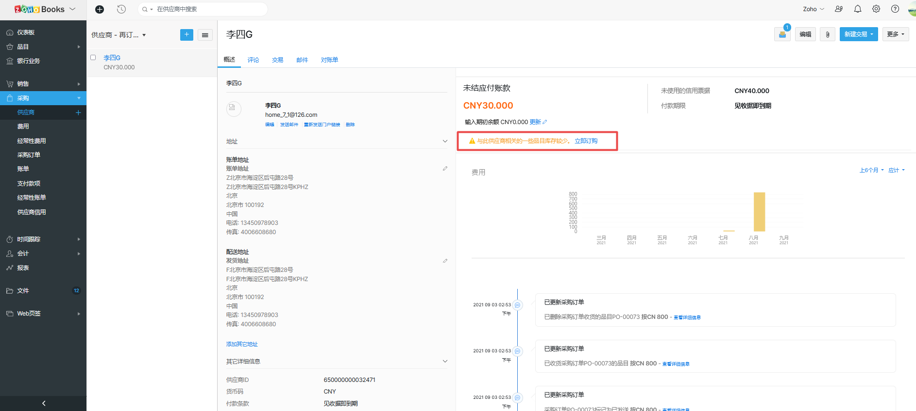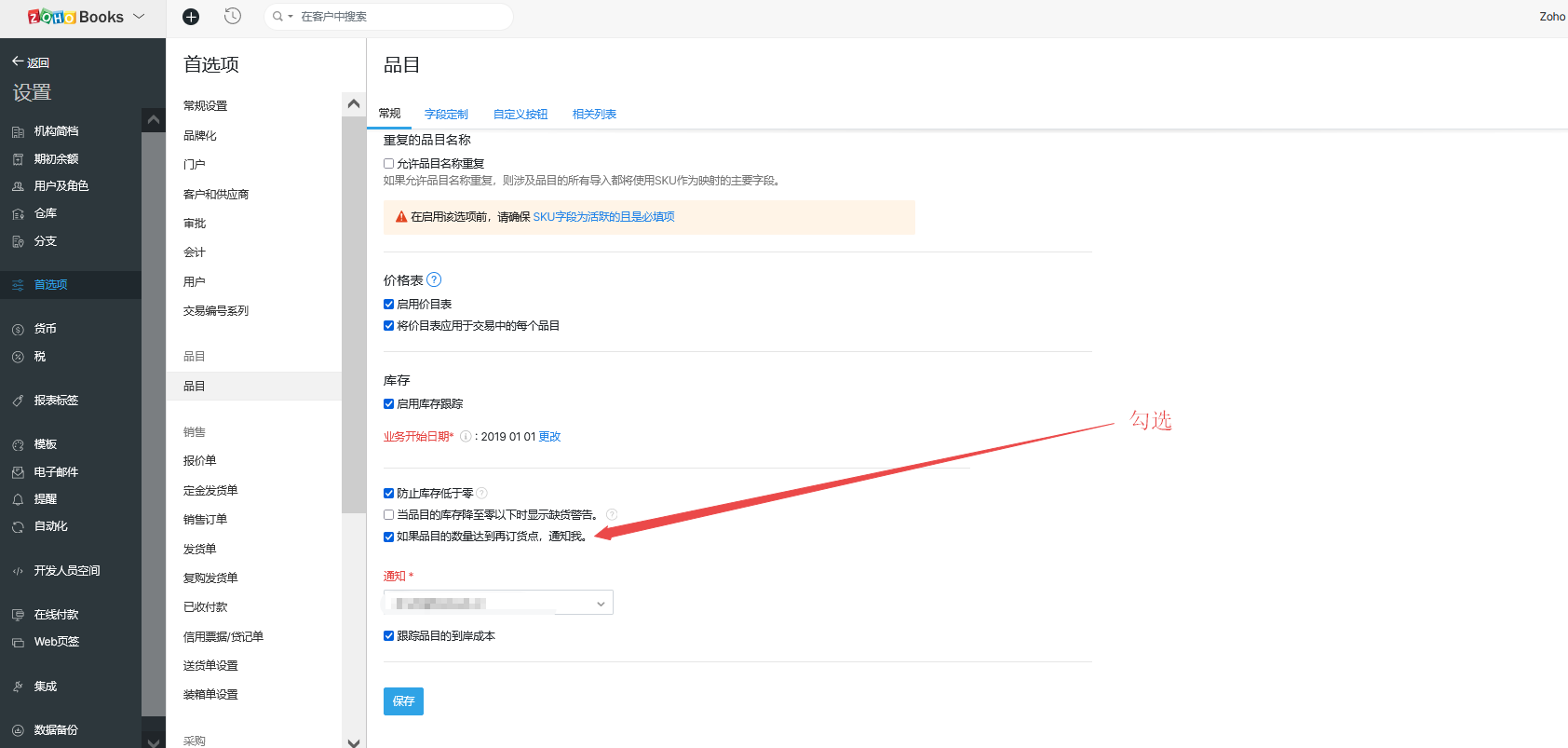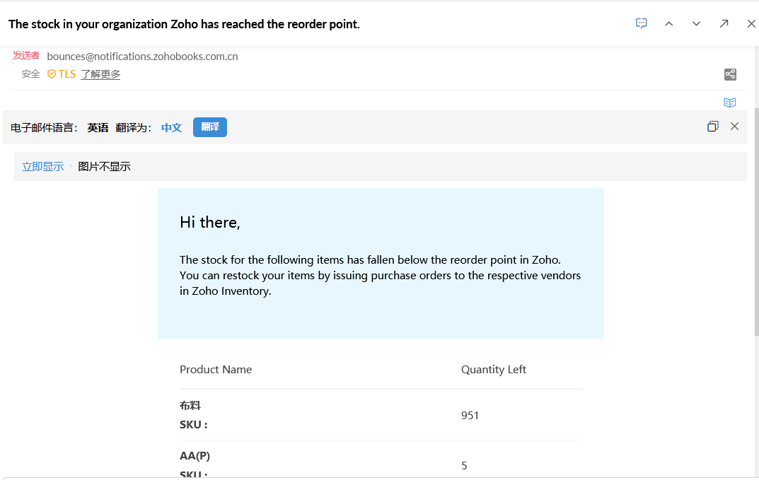 3.当对应的品目数量达到或低于再次订购点时,会收到邮件提醒。(一天一次)。