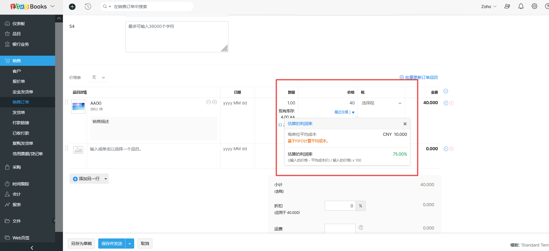 1.点击新建销售订单。