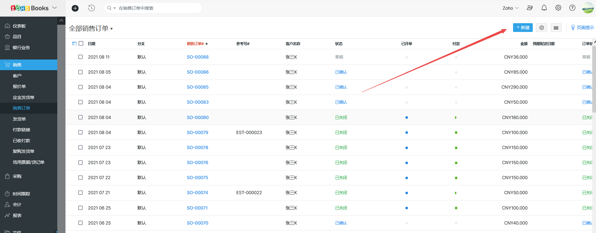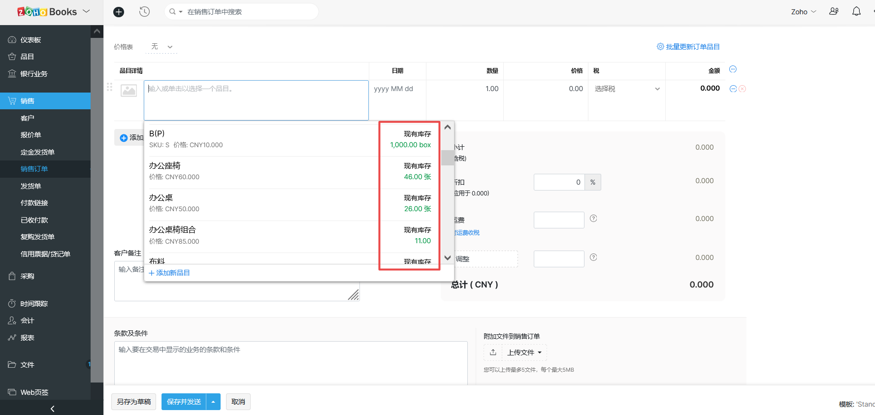 1.点击创建订单(报价/销售订单/发货单等)