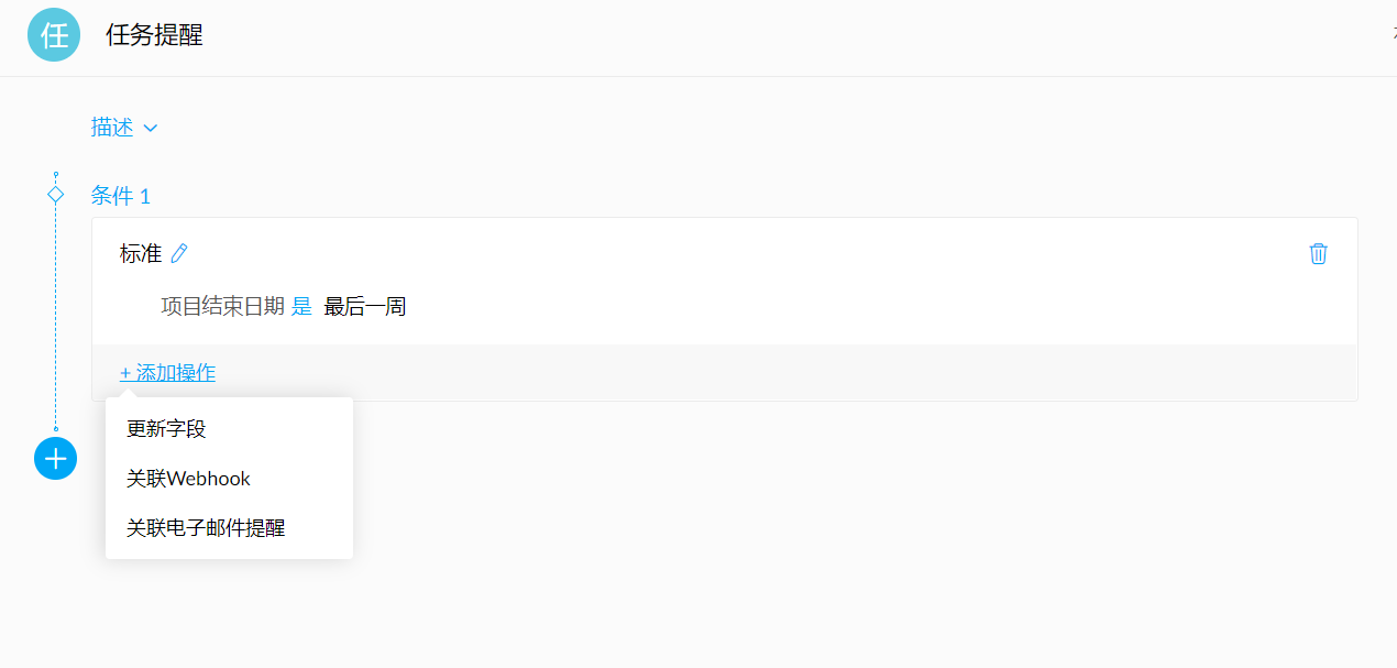 工作流是通过创建一条业务规则帮助您实现任务字段的自动更新,批量任务的自动到期提醒以及将提醒推送到第三方软件等。