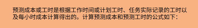 预测成本或工时根据项目的当前绩效提供未来图景。它是完成时的估计成本,根据日期、计划和实际成本的完成百分比计算。
