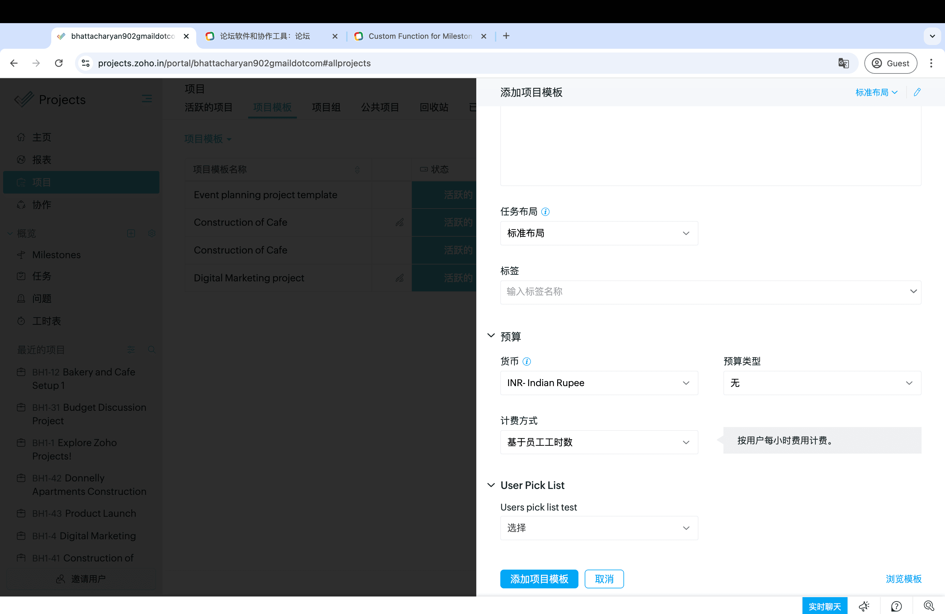 基于员工小时数 - 用户被分配不同的费率,项目计费基于参与项目的成员的用户费率。您可以在添加或编辑用户时设置用户费率。