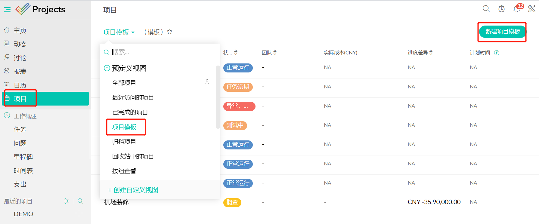 项目模板可以帮助您更有效地管理工作。您不必重复输入相同的任务,从而节省时间并提高工作效率。可以从项目列表视图访问项目模板。