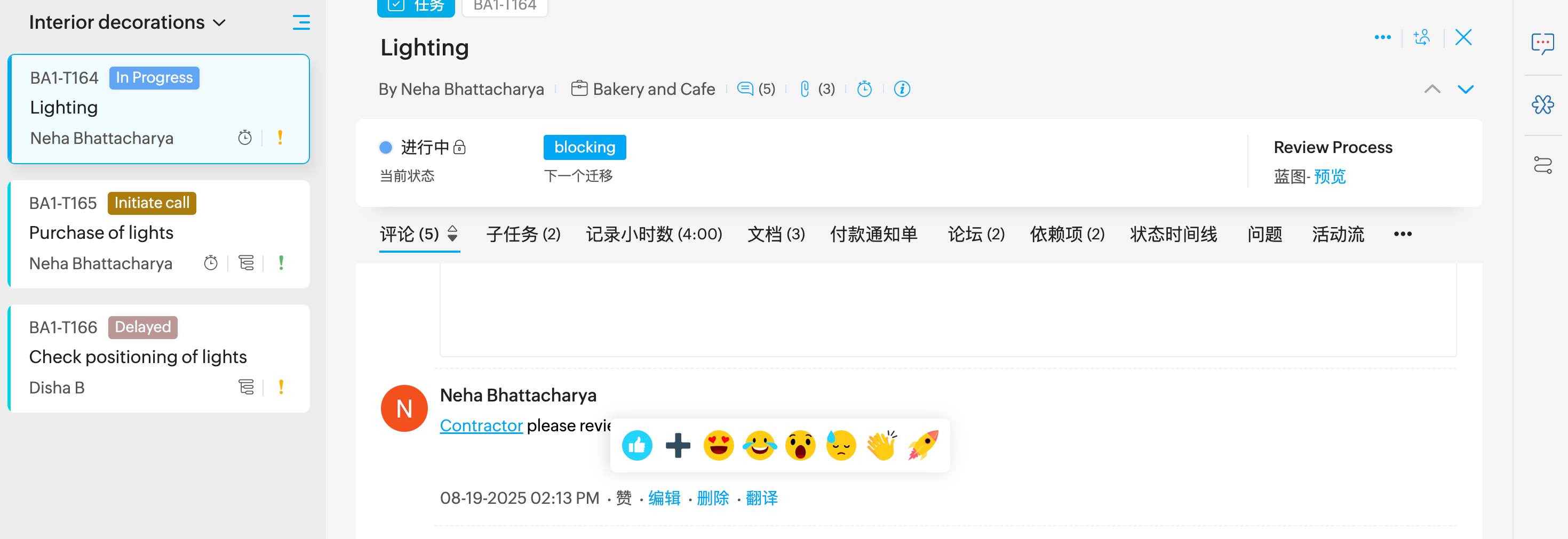 使用快速的表情符号回复,让项目讨论保持活跃。您可以使用表情符号在整个门户网站上回复评论,让对话轻松、快速且富有协作性。