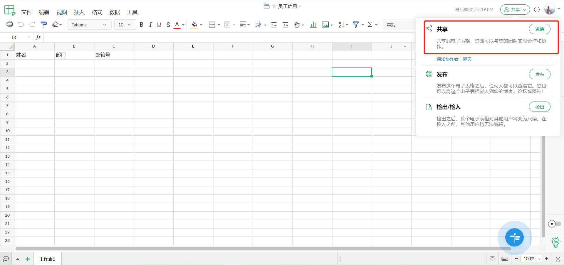 检出之后,这个电子表格对其他用户将变为只读。在检入之前,其他用户将无法编辑。只有检入后才可以进行协同编辑。
