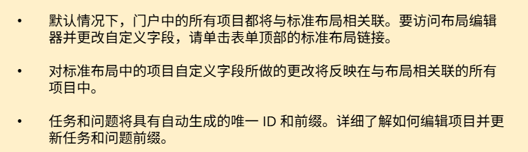 要查看门户中可用的任务布局列表,请导航至设置 > 自定义 > 任务 > 布局,然后返回新项目表单并从下拉菜单中选择它。