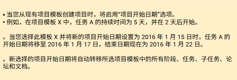 项目模块(阶段、任务列表和任务)的开始时间将根据新项目的项目开始日期进行调整。