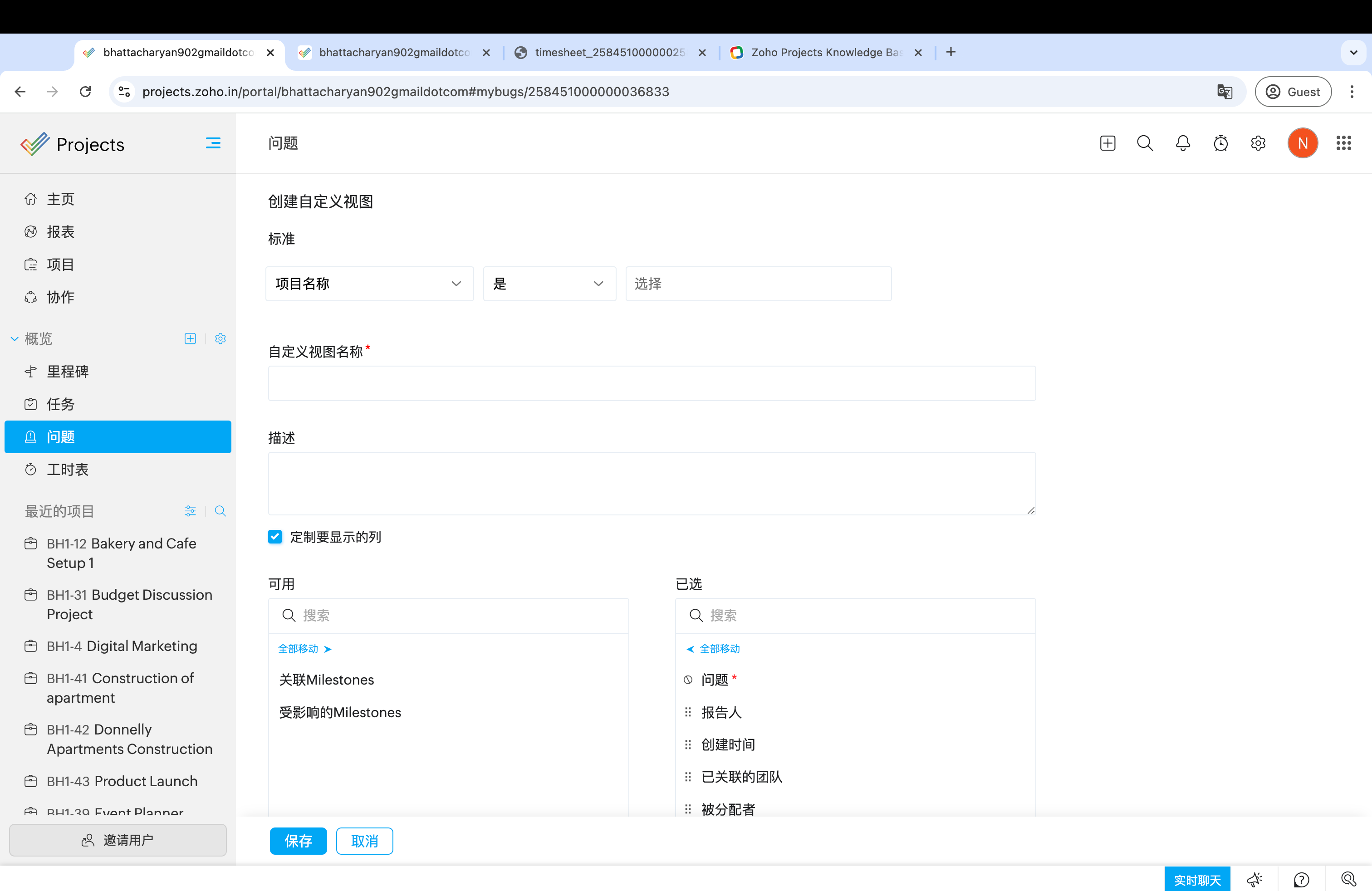 软件开发:在应用程序中发布功能后,可能会发现问题。在这种情况下,Zoho Projects 中的问题模块可用于开发人员准确追踪问题或错误。