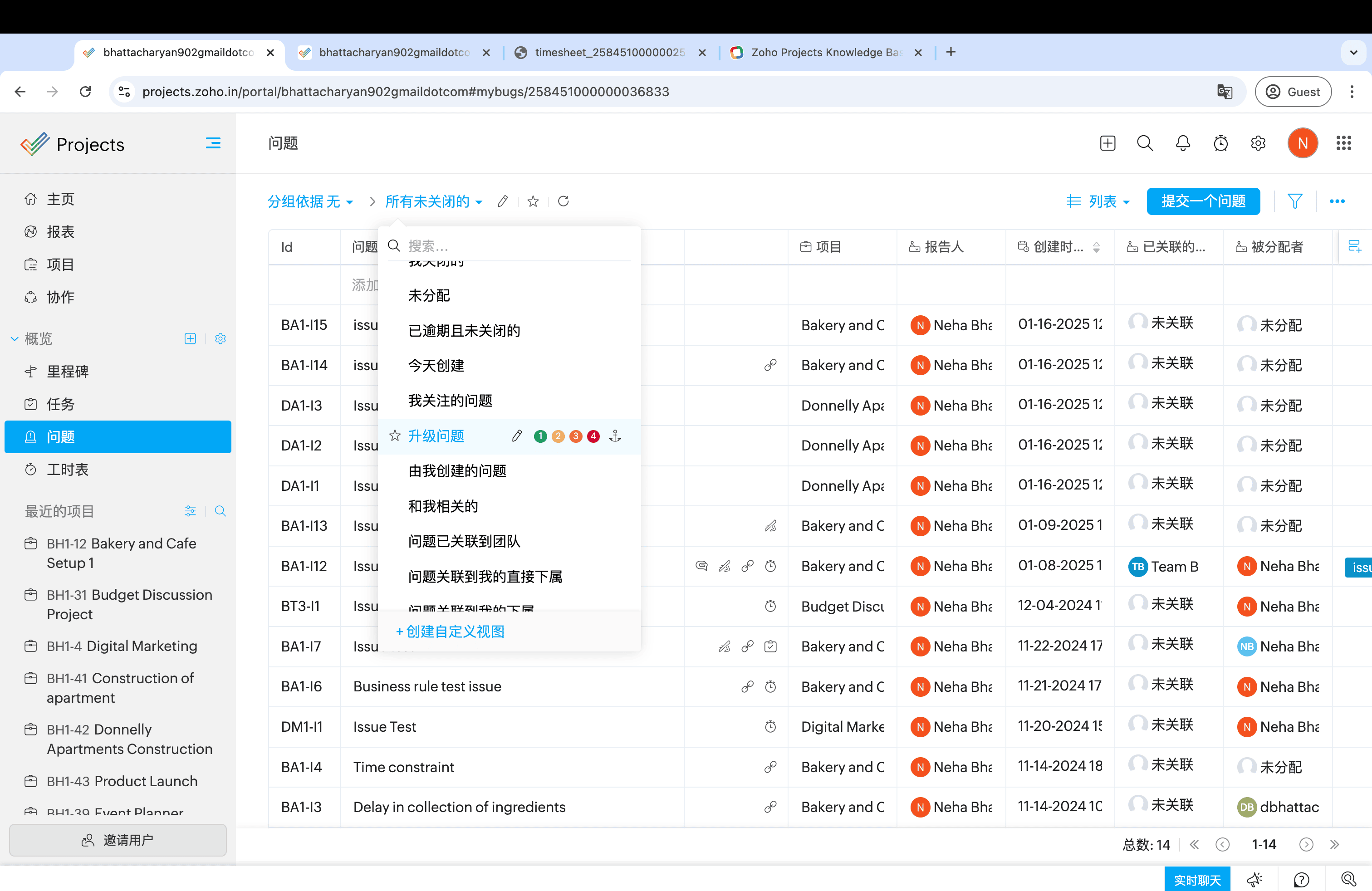 用户可以创建自定义视图并保存以供快速参考。例如,用户在默认视图中,可以查看分配给他们的所有高优先级问题。