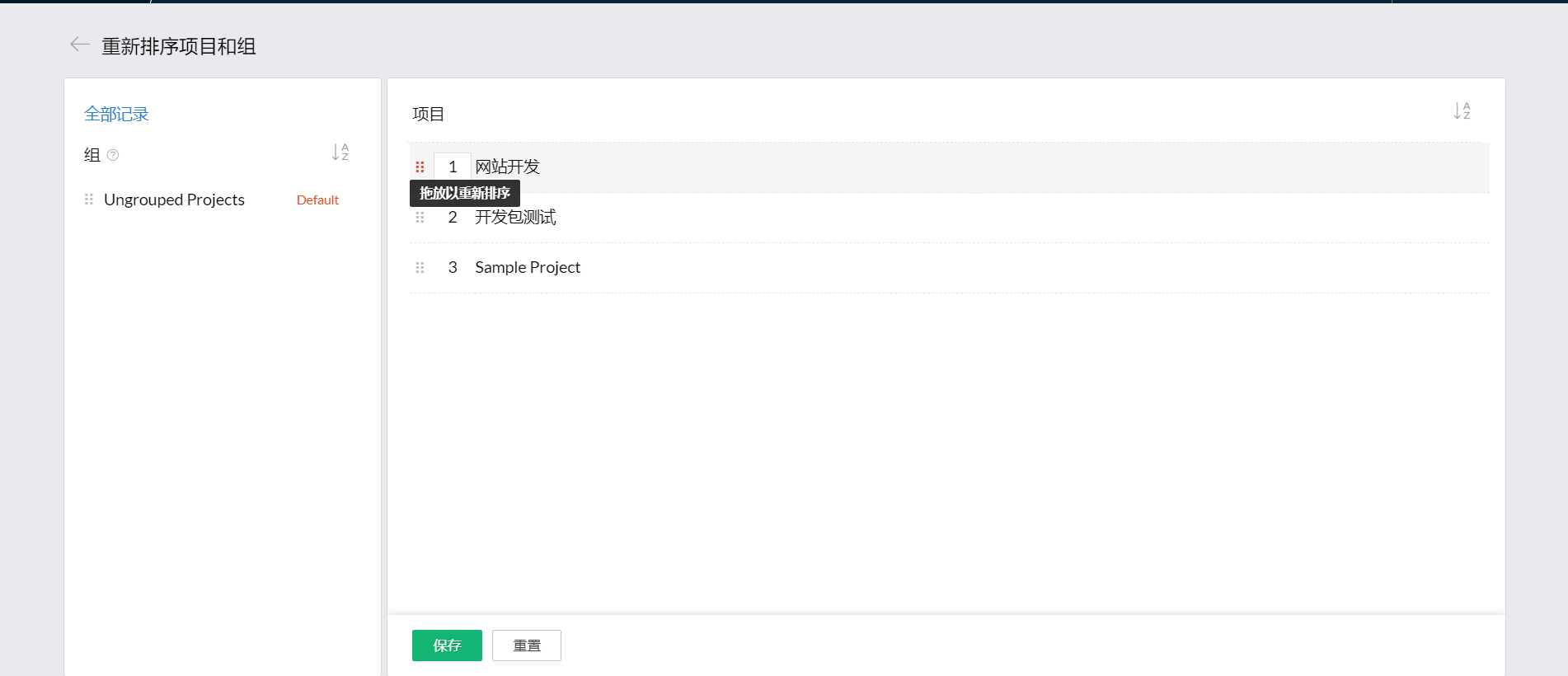 您可以重新排序项目和项目组,按您喜欢的方式查看项目列表。