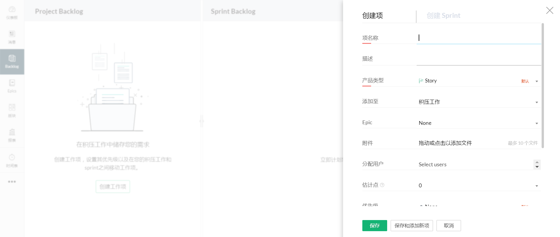 点击保存,以将该工作项添加到 Sprint 或积压工作。或者,点击保存和添加新项以添加该工作项,并同时创建另一个工作项。