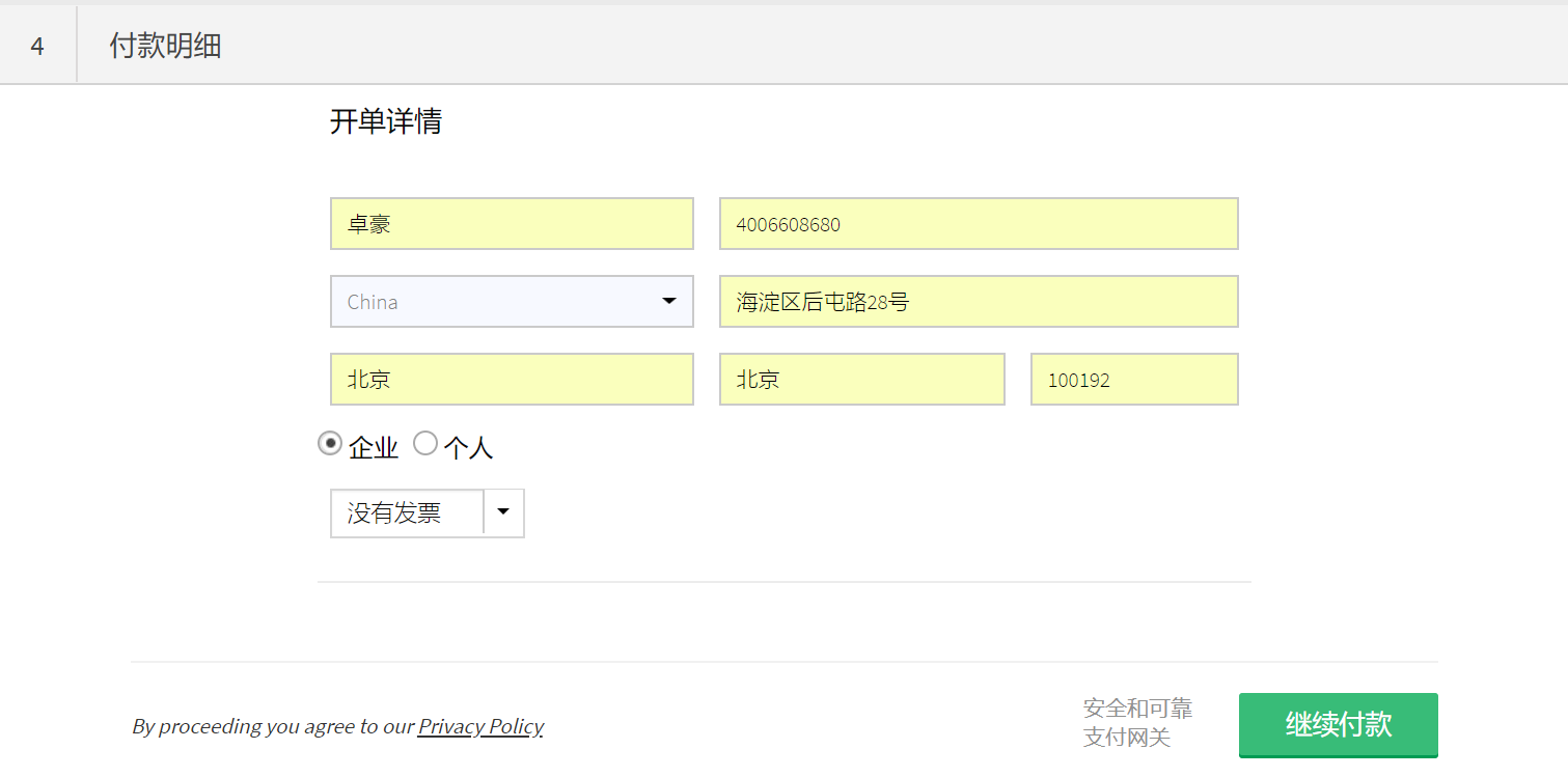 更新账单地址