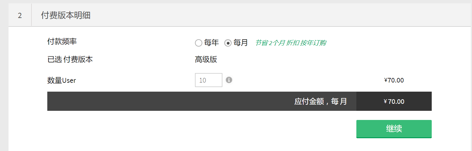 在按月版本与按年版本之间进行选择。